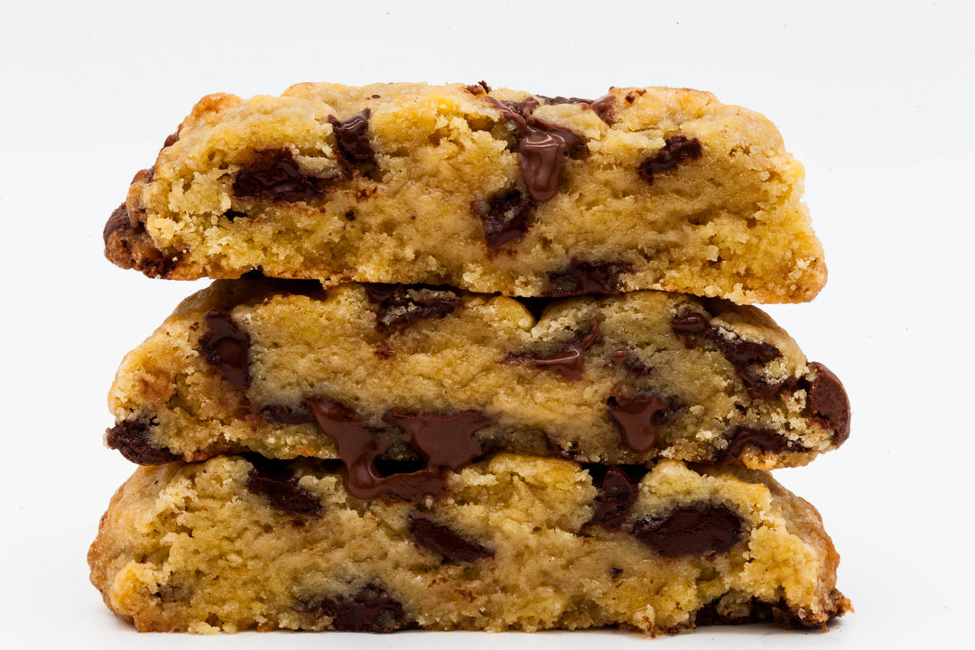 Heller Cookie-Teig mit dunklen Schokochips umhüllt einen zart schmelzenden Kern aus Nutella.